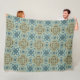 Green Grey Teal Blue Ochre Hip Bohemian Bali Art Fleece Blanket