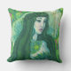 Green Hair Mermaid Underwater Fantasy Surreal Art Throw Pillow
