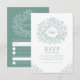 Green hand drawn leaf monogram RSVP wedding Card