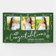 Announce to the world that your favorite grad has reached their milestone with this quirky, whimsical, simple, modern, personalized 3 photo banner. Fun, white handwritten script typography and hand drawn graduation icon sketch doodles, along with 3 photos of your choice, overlay a hunter green background. Personalize the custom text with your grad’s name, school and class year and your 3 photos. Choose from numerous sizes as well as indoor or outdoor options. Matching invites, thank you cards, address labels, hand signs, foam core welcome boards and other graduation goodies are also available in this trendy and whimsical collection. Guaranteed to preserve cherished memories of their special occasion!