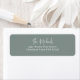 This design features a return address label, with a modern minimalist style and handwritten script, a green calligraphy, informal casual design, with a clean simple minimal, elegant and stylish trendy design, with a solid colour background and white lettering text.