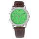 I was uncertain about the size being too small but it looks good. The case looks like aluminum (not shiny) and the time is easy to see. I changed the band because the leather doesn't go with my lifestyle.a. Exactly what I expected, nice yellow. It grabs peoples attention.