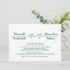 Équation cardiaque mignonne et lunatique en vert foncé avec une équation mathématique amusante "joindre" deux coeurs/personnes. Ce design nerveux est un choix charmant pour un couple amoureux des maths ou un couple qui veut quelque chose de simple mais avec un soupçon de fantaisie. Facile à customiser, il suffit d'ajouter les détails de votre mariage dans les champs de texte fournis. Cliquez sur "Customiser" pour trouver d'autres options de personnalisation.