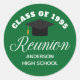 A classy custom class reunion party sticker in green and white for a high school, college, or university. Customize with your school name and graduating class under the elegant calligraphy for great personalized alumni celebration gifts.