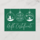 Customizable Simple Modern Green Christmas Holiday Logo Business Or Corporate Gift Certificate. A perfect gift certificate for for Christmas or the holiday season. Features 3 ornaments, one with 'Merry And Bright' in the centre. Add your logo to make it your own. A fun and simple gift certificate for corporate brands, small businesses, or individuals like makeup artists, estheticians, hair stylists, and so much more! Right now it is a green and white colouring, but you can switch out any of the colours to whatever you'd like to use! Even the ornaments you can switch! A mix of modern and script typography for a professional but chic look. Available as a printed card, or as a downloadable digital card that you can send in e-mail or have printed locally!