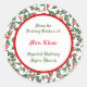 Editable baking or canning stickers with red and green vintage letters on a holiday pattern of green holly with bright red berries.