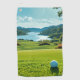Elevate your game with this beautifully designed golf towel, featuring a serene golf course landscape complete with lush green fairways, crystal-clear lakes, and a bright blue sky. A lone golf ball rests on the ground, adding a subtle touch of authenticity to the picturesque scene.