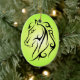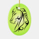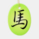 Oval ornament with black ink horse head, gradient green background, chinese character symbol for Horse on reverse. This is a great gift for the Chinese Year of the Horse (Jan 31 2014 - Feb 18 2015), for people who were born in a Horse year, or for horse lovers everywhere. The horse symbolizes action, freedom, progress, adventure and romance. Spiritually, the Horse is lucky for many people including business and sales people, artists and performers, athletes, engineers, travelers and people who work with or close to the Earth. 2014 is the Year of the Yang Wood (Green) Horse.
