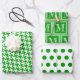 Green Houndstooth Monogram Polka Dot Wrapping Paper Sheet