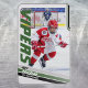 Parents of little league ice hockey players can proudly share their kids' accomplishments on the field with these customizable green trading cards photo magnet. The photo can be changed to feature your own little leaguer. Almost all text can be edited, including position.Ideal to give to friends and relatives and also so that your child can trade them with other kids who also have collectible trading cards magnets of themselves. It makes a unique ice hockey card collection photo magnets gifts.