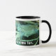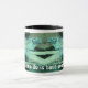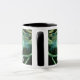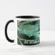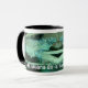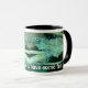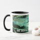 White and black 11 oz. combo mug with an image, on both sides, of a beautiful green iguana and an optional pun.