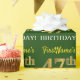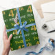 This wrapping paper design features a message like "FirstName’s 47th BIRTHDAY!", with the "47th" having a faux/imitation gold-like colour appearance. The name can be customized, and the background is coloured green. It could perhaps be used when wrapping gifts being given for somebody’s forty seventh birthday. [~Z0000179]