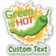 Green pepper with environmental message over circle of flame. Custom text.
