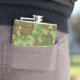 Green ivy on gold black brown plaid hip flask