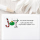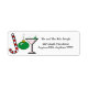 A candy cane in the shape of a "J", a green ornament in the shape of an "o" and a martini in the shape of a "y" spell out "Joy" on this whimsical Christmas return address label. Customizable text for your name and address! We have matching cards, stationery and envelopes for this design and also have this available with a red ornament!