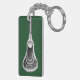Cool lacrosse keychain featuring unique lax stick and ball illustration on green background for lacrosse player or team coach.