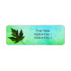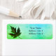 A dark green leaf on a blue and green gradient background makes an eye-catching return address label.