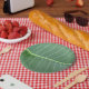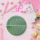 Green Leaf and Light White Line Design 7" Round Paper Plate
