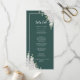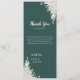 Célébrez votre jour de mariage avec notre élégant menu de mariage et carte de remerciement floral à feuilles vertes. Ce design deux-en-un combine joliment un message de remerciement sincère avec un menu de mariage détaillé, parfait pour impressionner vos invités avec gratitude et détails gastronomiques. Les illustrations de feuilles vertes luxuriantes ajoutent une touche de sophistication inspirée de la nature à votre décor de table. Idéal pour les mariages champêtres, rustiques ou en plein air, cette carte double usage assure que votre mariage est aussi élégant que réfléchi. Personnalisez-la avec votre message personnel et menu pour la rendre unique.