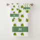 Green leaf pattern and monogram on white Bath Towel Set. Elegant simple design for everyone!