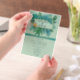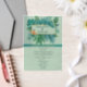 Green tropical leaves with a hint of turquoise the color of the waters, vellum invitation.