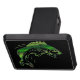 Digital art featuring a fish in gradient shades of green, yellow and brown jumping out of water on a black background. Change the background colour, if desired.