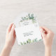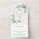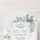 This pretty all season wedding invitation with tear away RSVP card combines elegant watercolor images of blue green leaves with modern typography. The inside gold frame is embellished with soft leaves, and the outside flap shows your own photograph. Your custom text is a combination of handwritten script and traditional fonts in gold and blue green, and there are plenty of fields for your information. If you don't need a text field, just blank it out. We are always happy to help, so feel free to message us if you need assistance. If you're having a buffet reception, we can work with you to re-design the RSVP portion, so don't hesitate to ask!