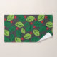 Green Leaves, Red Berries, Pattern Of Leaves Bath Towel Set