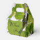 Thank you treats for your guests nestle perfectly in this rich green personalized gable gift box with beautiful trees leaves in sunlight full of the charm of nature.