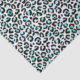 This design showcases turquoise leopard print spots on a white background. Perfect for decoupage art, paper crafts, or gift wrapping.