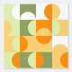 This design showcases a modern geometric pattern with circles and half-circles in shades of dark forest green, light pastel lime, corn yellow and orange against a white backdrop. It's an elegant and stylish design that embodies eclectic minimalism, perfect for artistic interior designers, decor enthusiasts, trendsetters, and fans of vintage retro or abstract digital geometric motifs. This ornate yet funky hipster pattern is versatile, available on a variety of contemporary home decor items, making it suitable for enhancing the ambiance of spaces such as master or children's bedrooms, kitchens, nurseries, living rooms, women's caves, college dorms, condos, studios, or apartments.