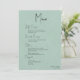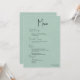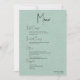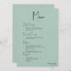Whimsical minimalistic modern, customizable black script typography, elegant wedding menu. The light green colour linen printed texture background adds a touch of organic feel of classic elegance. Other colours are available.