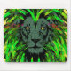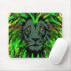 Green Lion Mousepad - Lion Face Portrait Drawing