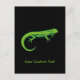 Green lizard icon with woodcut shading. Custom text. Seamless pattern at back side.