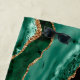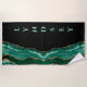 This dazzling beach towel has veins of faux green malachite edged in gold glitter. The right side is jet black and you personalize it with your name vertically down the side in a pale blue green.
