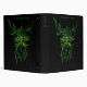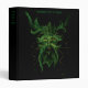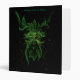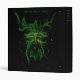A green man face of celtic lore set in a backdrop of black. Green leaves.