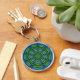 This magical, mysterious, mystical keychain features a brilliantly coloured three dimensional circular abstract pattern of kaleidoscopic curves and circles in green, blue, gold, turquoise and yellow.