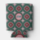 Green Maroon & Pink Elegant Tile Pattern Monogram Can Cooler