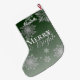 Add a festive touch to your fireplace mantle this holiday season with a Green Merry and Bright Snowflakes Christmas Stocking. Stocking design features falling snowflakes with the greeting Merry and Bright in a modern font and a soft white overlay with a space you can add your name for personalization. Additional gift and holiday items available with this design as well.