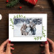 This template features a Merry Christmas, one photo cards, greenery foliage, a mistletoe, botanical green, a simple minimalist, classic traditional, an elegant, with holly berries leaves.