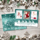 Share the holidays with friends and family with this beautiful Christmas photo card featuring 3 of your favourite photos, and Santa sleigh gliding across the snow on an aqua green brushed metallic background. The back features white falling snowflakes on aqua green brushed metallic background. Easy to personalize with custom options. Use the 'Customize It' button to customize the product, or add text.