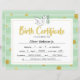 Green Milestone Certificate Baby Birth Certificate