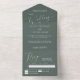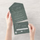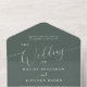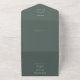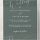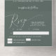 Elegant and minimal wedding invitation card with an RSVP card featuring a modern script text on a forest green background.