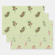 Green Mistletoe Red Berries and Red Candy Canes Wrapping Paper Sheet