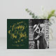 Green Modern Calligraphy and Wreath New Year Photo Foil Holiday Card