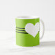 Sweet and charming Modern Heart Mug featuring a chartreuse green background and a cute heart and striped border. This cute and girly mug is perfect for enjoying your favourite hot beverage! Customize with the text of your choosing. Click on "Customize" to find additional personalization options.