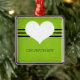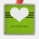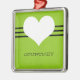 Sweet and charming Modern Heart Ornament featuring a chartreuse green background and a cute heart and striped border. This cute and girly ornament will add style any decor! Customize with the text of your choosing. Click on "Customize" to find additional personalization options.