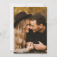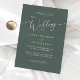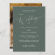 Minimal wedding invitation template card featuring modern script text on a forest green background. Customize this invite by adding your own wedding information. Perfect for any season wedding. You can add your engagement photo on the back.