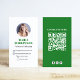 This design features a green modern minimalist business card, with a scannable QR code for social media, a simple minimal, add your photo or logo, with your website, contact details, email phone, and mobile number, a bold professional, trendy chic style.