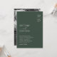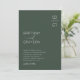 Minimal chic wedding invitations featuring a stylish green background, your initials in the top right corner, a elegant modern text template with your names, and the wedding information.